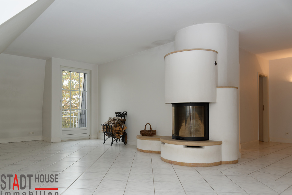 Bei der angebotenen Wohnung handelt es sich um eine architektonisch attraktive Maisonette- Wohnung. Die Wohnung präsentiert sich lichtdurchflutet und verfügt auf der Ebene im 2. Obergeschoss/Dachgeschoss über ein großes Wohnzimmer mit einem offenen Kamin und bodentiefen Fenstertüren zum Balkon, zwei Schlafzimmer, eine hochwertige Küche mit Möbeleinbauten und den üblichen Elektrogeräten, eine große zum Wohnzimmer offene Diele, die als zusätzlicher Essplatz zur Frühstücksbar in der Küche genutzt werden kann und ein Badezimmer mit Eckbadewanne und Duschkabine. Eine offene, weiße Holztreppe führt zum ausgebauten, und ebenfalls lichtdurchfluteten Spitzboden, der über ein weiteres Zimmer und ein en Suite Duschbad verfügt, dass über ein ebenfalls vorhandenes Ankleidezimmer betreten wird. Ein Tiefgaragenstellplatz und ein Kellerraum gehören selbstverständlich zur Wohnung.