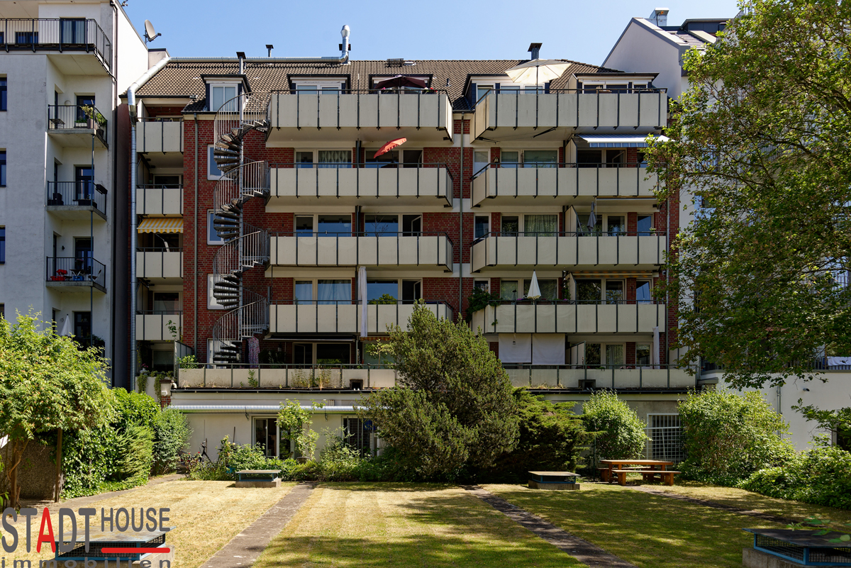 In einer geschlossenen Bebauung wurde im Jahr 1984/5, das mit zwei Eingängen erstellte Gebäude, im Mühlenkamp 9-11 errichtet. Das Gebäude mit 25 Wohn- und 2 Gewerbeeinheiten verteilt sich auf vier Vollgeschosse, ein ausgebautes Dachgeschoss und das Erdgeschoss mit Tiefgarage. Mit einer roten Klinkerfassade auf der Straßenseite, Balkonen auf den Gartenseiten sowie einer Tiefgarage, präsentiert sich die Wohnanlage in einem sehr guten Zustand. Zwei Aufzüge, die kurzfristig saniert werden, stehen zur Verfügung. Die Kosten für die Modernisierung werden aus den Rücklagen gezahlt. Eine Sonderumlage ist derzeit nicht geplant. Das Grundstück, gartenseitig nach Süd-West ausgerichtet, grenzt an den Mühlenkampkanal. Hier befindet sich ein privater Anleger für die Hausgemeinschaft, von dem Sie mit dem Kajak oder Kanu direkt in die Außenalster gelangen können.