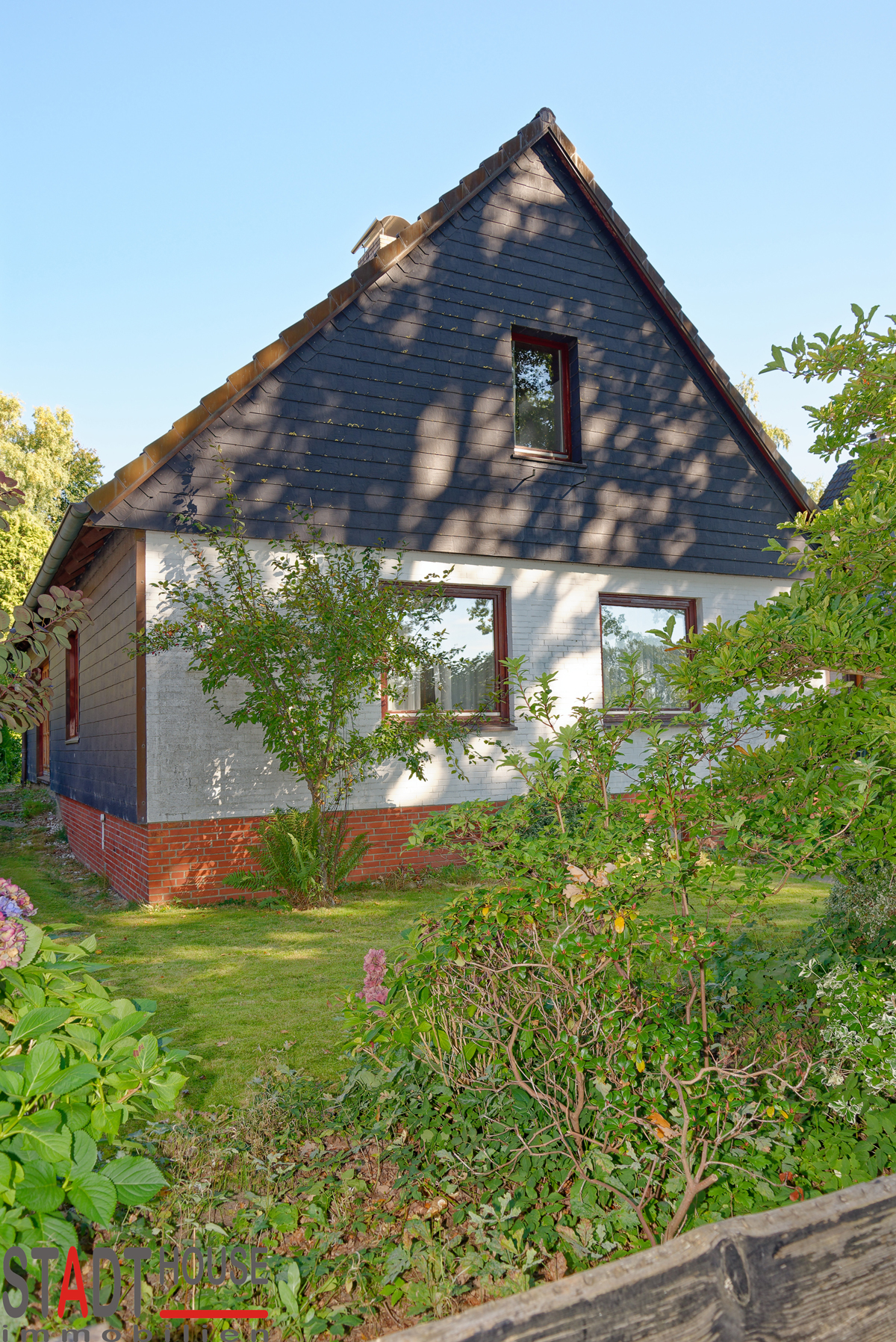 Das angebotene Einfamilienhaus wurde 1967, in massiver Bauweise mit einem Satteldach und Teilkeller erstellt. In späteren Jahren wurde der straßenseitige Giebel im oberen Bereich sowie die beiden Längsseiten des Gebäudes, als Wetter- und Wärmeschutz, mit einer hinterlüfteten Verschieferung verkleidet. Das Haus präsentiert sich in einem gepflegten, dem Baualter entsprechenden Zustand. Pläne für die Erweiterung des Hauses mit einem Anbau von 5,5 m x 8,35 m liegen vor. Das ca. 1.107 m² große Grundstück ist pflegeleicht, mit einer Einfriedung aus Zäunen und Hecken, zahlreichen Büschen und Blühpflanzen, einer Rasenfläche und einer Terrasse, angelegt. Am Ende der Grundstückszufahrt befindet sich eine massiv erstelle Garage mit einem Wellasbestdach.