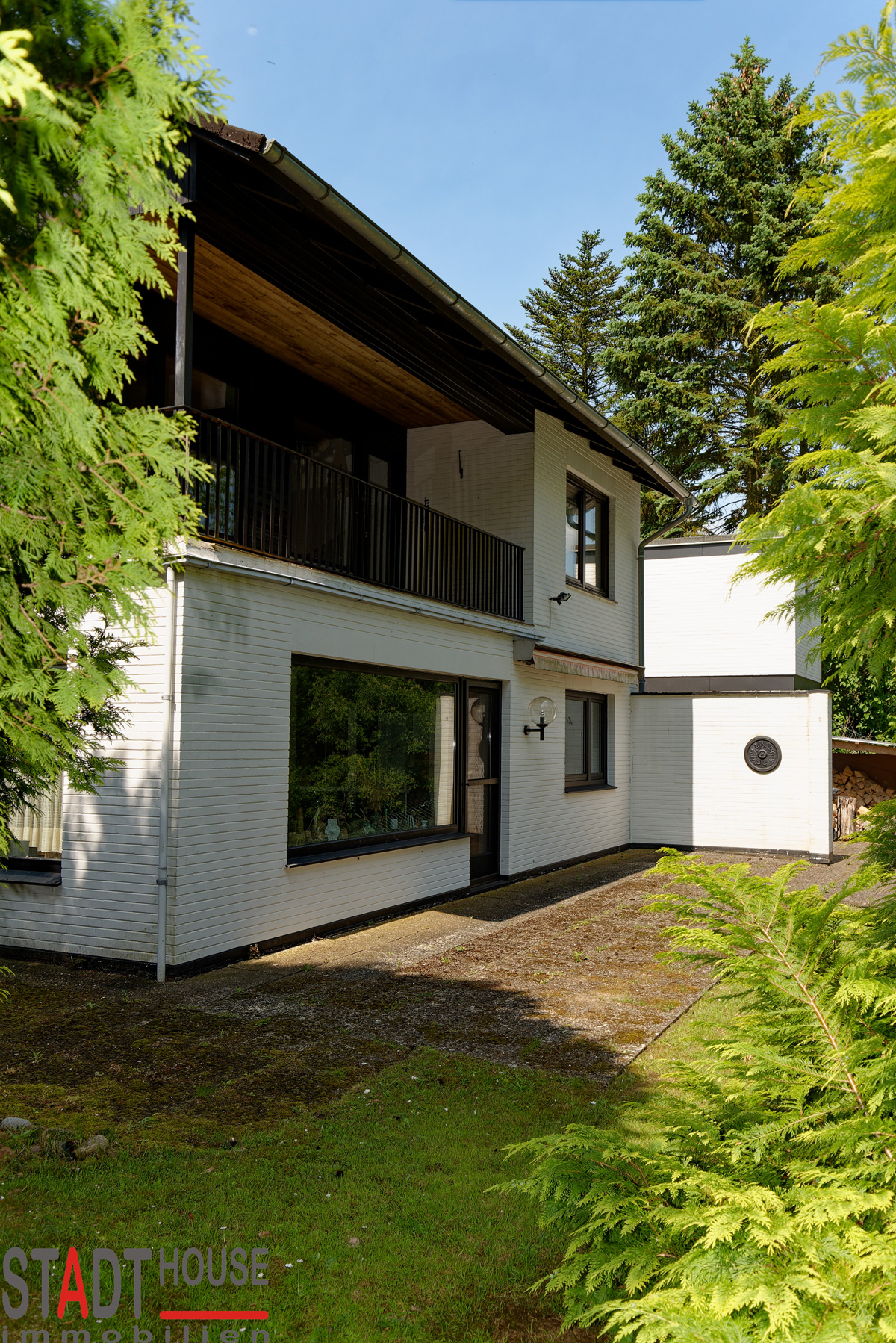 Das angebotene Einfamilienhaus wurde 1972 massiv, unter einem mit Betondachpfannen eingedeckten Satteldach und einer weiß gestrichenen Klinkerfassade, errichtet und präsentiert sich in einem gepflegten Zustand. Das Gebäude verfügt über zwei Vollgeschosse, wobei durch die Hanglage des Grundstücks, das untere Geschoß über einen direkten Zugang zur Terrasse und zur Gartenfläche verfügt. Das obere Geschoß, über welches das Haus betreten wird, verfügt über eine Loggia mit fantastischem Blick über den Seedorfer Küchensee. Im Jahr 2015 wurde das große, isolierverglaste Panoramafenster im Wohnzimmer, ebenso wie die überwiegende Anzahl der Nachtspeicherheizkörper und der Schornsteinkopf bzw. die Verkleidung, ausgetauscht. Die verglaste Eingangstür mit Seitenteil wurde im vergangenen Jahr erneuert. Neben dem Haus befindet sich eine Doppelgarage mit einem Geräteraum auf der unteren Ebene. Das auf der Gartenseite nach Osten ausgerichtete Grundstück ist liebevoll, mit einer Einfriedung aus Zäunen und Hecken, zahlreichen Büschen, Blühpflanzen und Bäumen, einer Rasenfläche und einer Terrasse, angelegt.